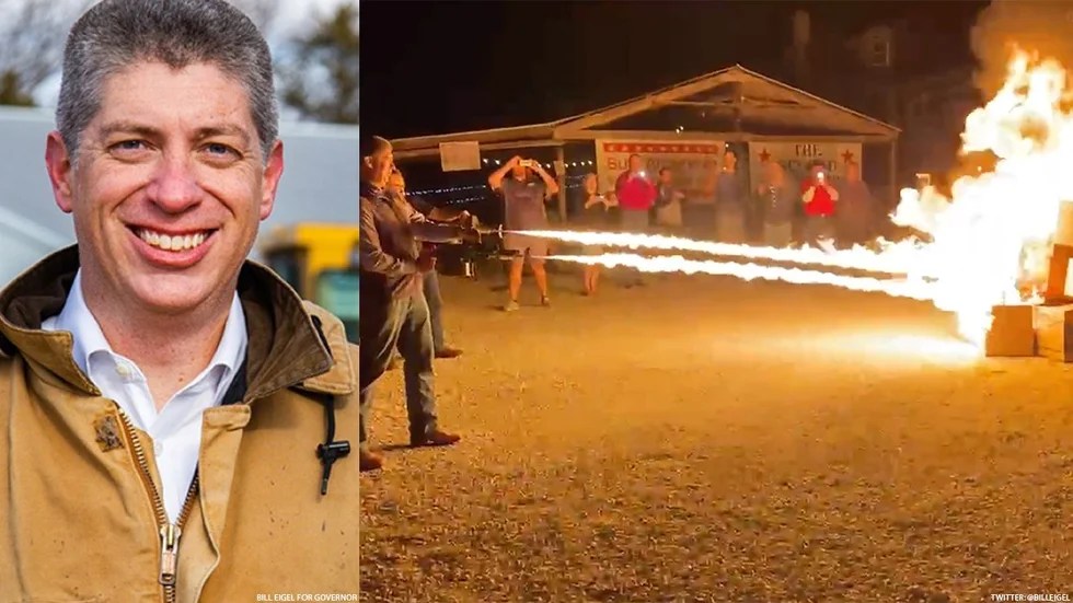 Missouri State Sen. Bill Eigel burning boxes of ‘Woke Pornographic Books’ at a Republican Rally in Charles County