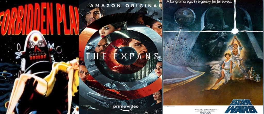 Forbidden Planet (1956, Warner Bros), The Expanse (2016, Amazon TV), Star Wars – A New Hope (1977, 20th Century Studios)