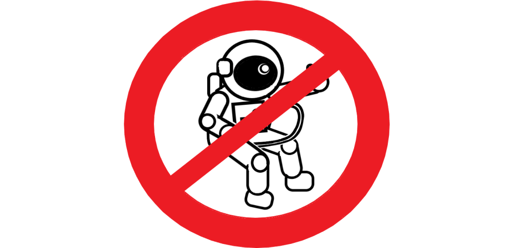 Next on the docket – Riding the E-Rail, I want to have the first two books out before Worldcon opens it’s doors and I’m planning to have a big launch party for the third and final installment of the series at Glasgow itself! This is going to involve a new standee, pin-badges and possible bookmarks. At present I’m working on a simple little ‘No Humans’ design, it’s in a proto-iteration, but here’s a sneak peak…