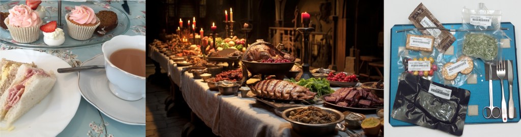 Bourbon and coffee on the mean streets, rehydrated rations on a starship, afternoon tea with the pastor, or a medieval style banquet in a castle in the sky. At some point, somewhere in our stories, someone sits down to eat, drink and (probably not) be merry, but why? A character on a page doesn’t need to eat, but by settling them into these particular scenes we can feed the audience insights as fulfilling as the food on the main’s plate and, through a smorgasbord of language, offer teasing bites into the world around them.